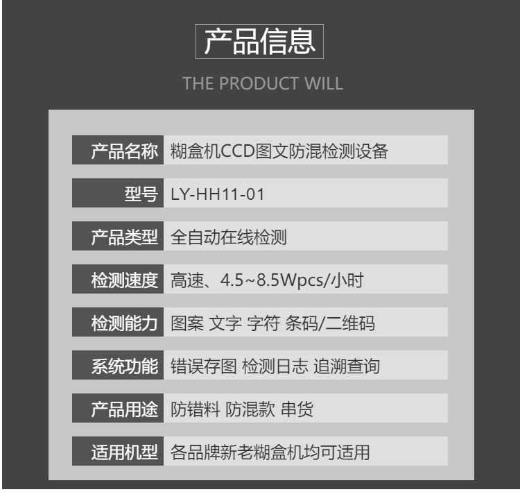 糊盒機在線CCD檢測系統(tǒng)加裝在走紙航道上,連線識別混貨混款,可幫助紙品包裝廠解決粘盒出貨混料問題,提高出貨品質(zhì)。